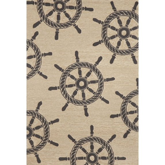 Liora Manne Frontporch Ship Wheel Indoor/Outdoor Rug Natural 5'X7'6"
