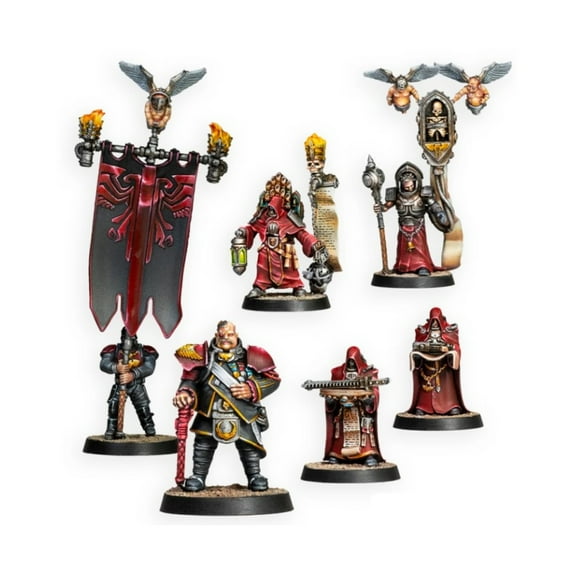 Trench Korps Command Squad is a formation of certain individuals whose main objective is clear - to make sure that the battle will be won at all costs. This group includes Imperial Guard Governor, Imperial Guard Fallen Counter, Trench Korps Parade Banner Bearer, Armoury Acolytes, and Vox Magister Acolyte.