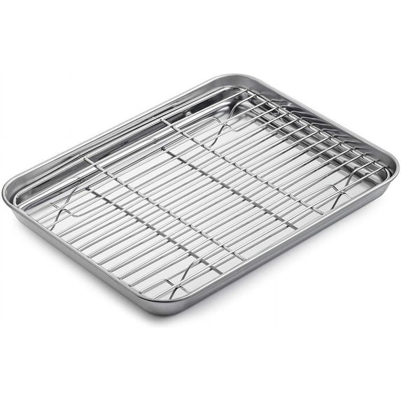 134.3 out of 5 Stars. 13 reviewsSave withShipping, arrives tomorrow9 Inch Baking Tray Pan & Cooling Rack Set, Manss Stainless Steel Rectangular Toaster Oven Pan with Grid Rack for Cookies/ Meats/ Bacon, Non-toxic & Heavy Duty, Rust-free & Dishwasher Safe $16.99