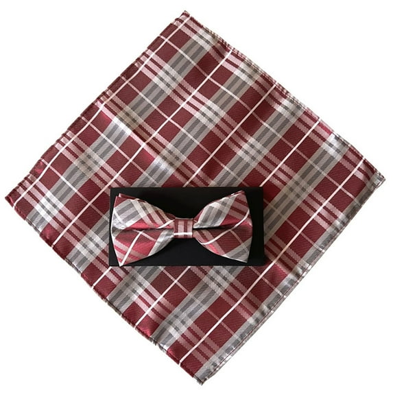 Hero image 0 of Triple M Plus Argyle Plaid Tartan Bowtie with Pocket Square Set In Burgundy(Wine/Maroon/Sangria/Claret) with Gray and Heather Gray Color, 0 of 1