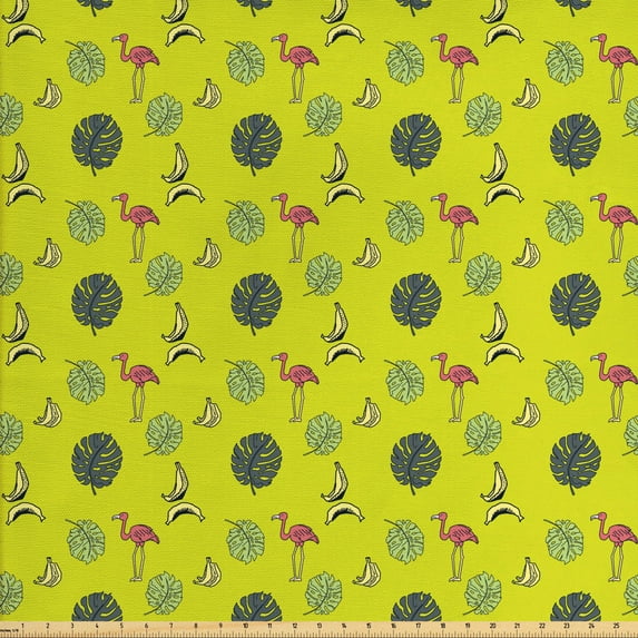 Hero image 0 of Tropical Sofa Upholstery Fabric by the Yard, Hawaiian Monstera Bananas and Flamingos, Decorative Fabric for DIY and Home Accents, Apple Green Multicolor by Ambesonne, 0 of 4