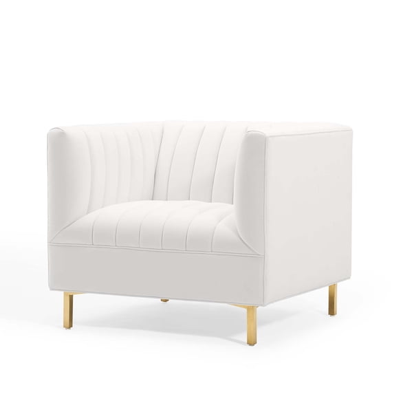 Hero image 0 of Tufted Armchair Accent Chair, Velvet, White, Modern Contemporary Urban Design, Living Lounge Room Hotel Lobby Hospitality, 0 of 8