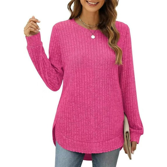 Hero image 0 of Tunic Blouses for Women Basic Scoop Neck Ribbed Knit Long Sleeve T-Shirts Loose Side Split Pullover Tops Shermie, 0 of 5