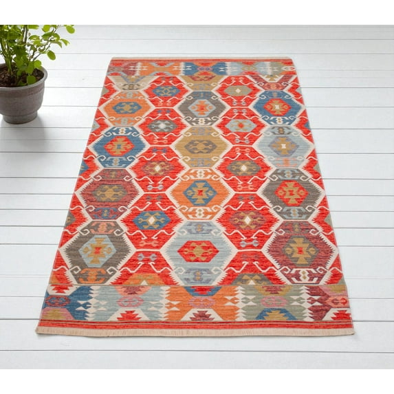 - Vibrant & Detailed: The rich colors, including shades of red, blue, grey, orange, and beige, along with the detailed weaving, will bring warmth and a touch of bohemian style to any room.