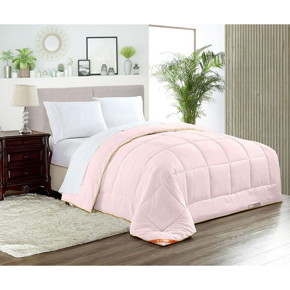 Hero image 0 of Twin Comforter Solid Pink 300 GSM Plush Siliconized Microfiber Fill Duvet Insert Box Stiched Quilted Fluffy Soft 600 TC Egyptian Cotton Shell with Piping & Pillowcases, 0 of 8