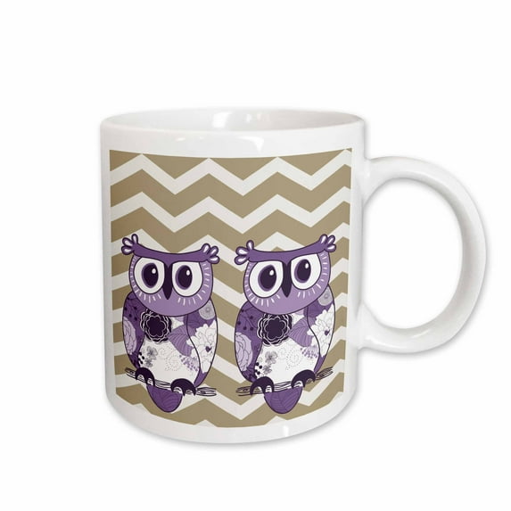 Hero image 0 of 3drose, Two Purple Owls with Beige and White Chevron, 11oz Mug, 0 of 6