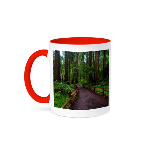 Hero image 0 of 3dRose, USA, California. Path among redwoods in Muir Woods NM. , 11oz Two-Tone Red Mug, 0 of 7