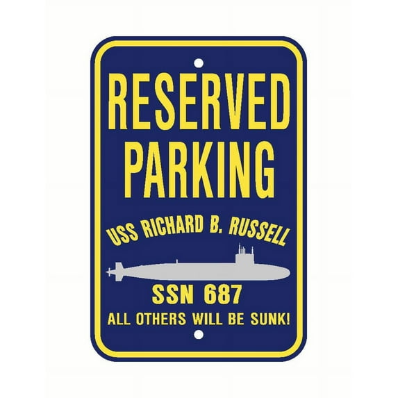 Hero image 0 of USS RICHARD B. RUSSELL SSN 687 Reserved Parking Sign Aluminum 12" x 18" Military Navy USN Car Truck RV Made In The U.S.A. PS003., 0 of 1