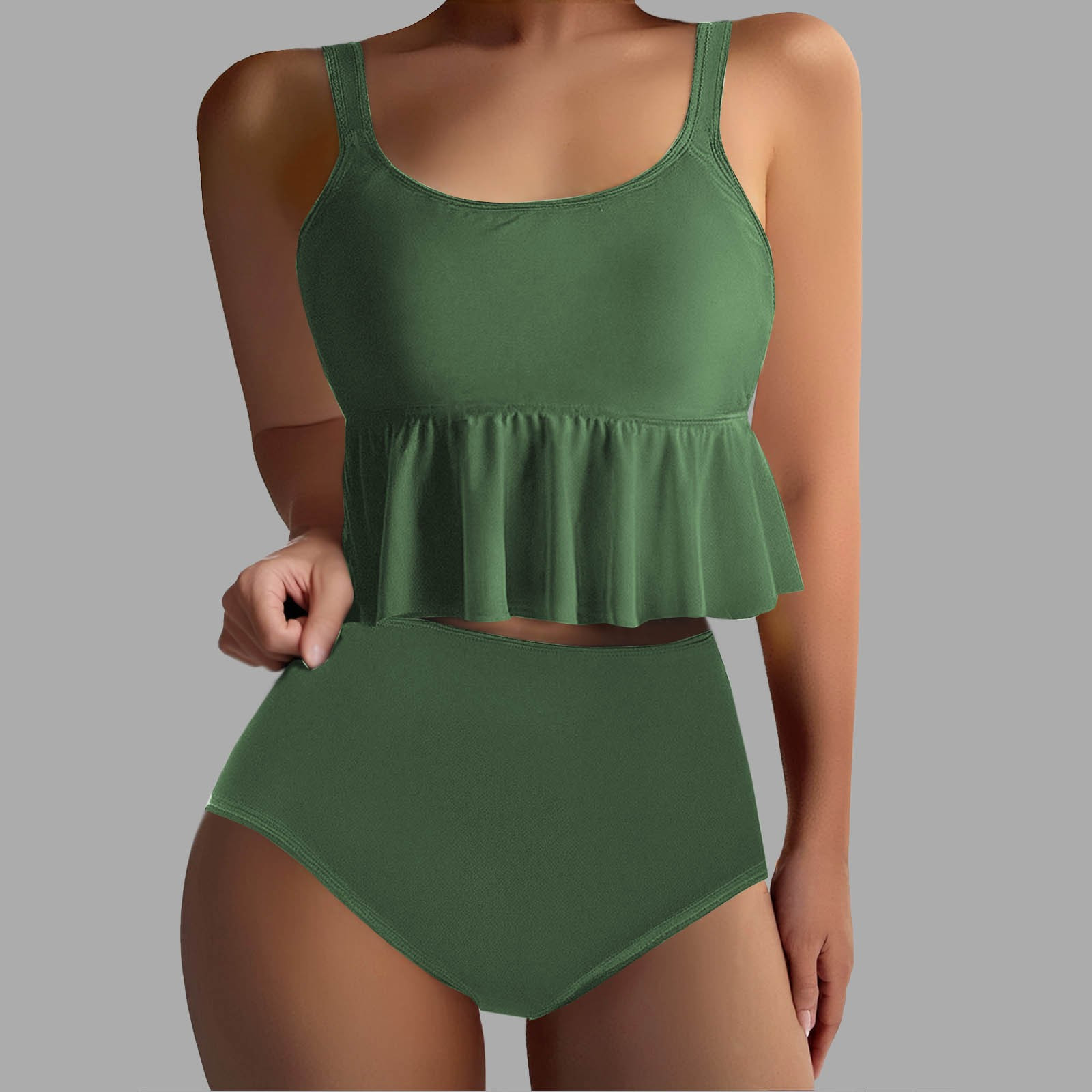 Hero image 0 of UTSJKR Two Piece Bikini Sets for Women High Waisted Floral Bottoms Swimsuit Sexy Full Coverage Padded Bathing Suit Beachwear Army Green XXXL, 0 of 6