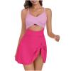 - UTSJKR Women One Piece Swimdress Tummy Control Bathing Suit Push Up Swimsuit Modest Swimwear Cutout V Neck Cute Tie Knot Skirt Hot Pink XL