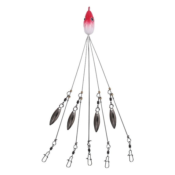 - Versatile Design: This Umbrella Rig, also known as an Alabama Rig, features a metal head and five flexible wire arms designed to simulate a school of baitfish.