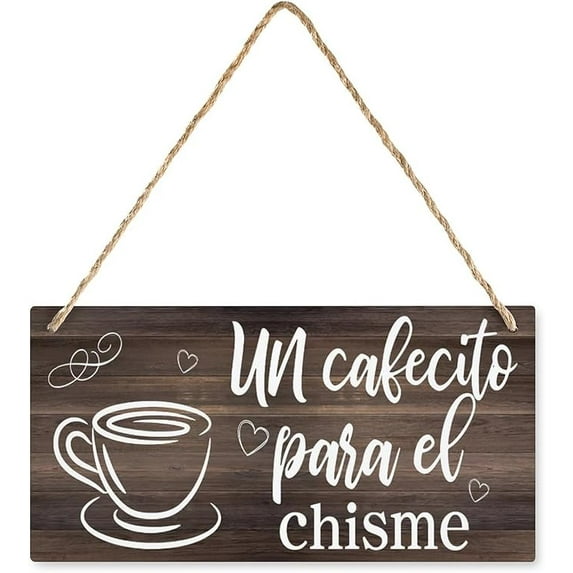 Un Cafecito Para El Chisme Sign,Spanish Coffee Sign,Spanish Kitchen Signs,Spanish Home Decor,Kitchen Sign,Coffee Farmhouse Signs Home Decor,Gift for Coffee Lovers 10x5 Inches