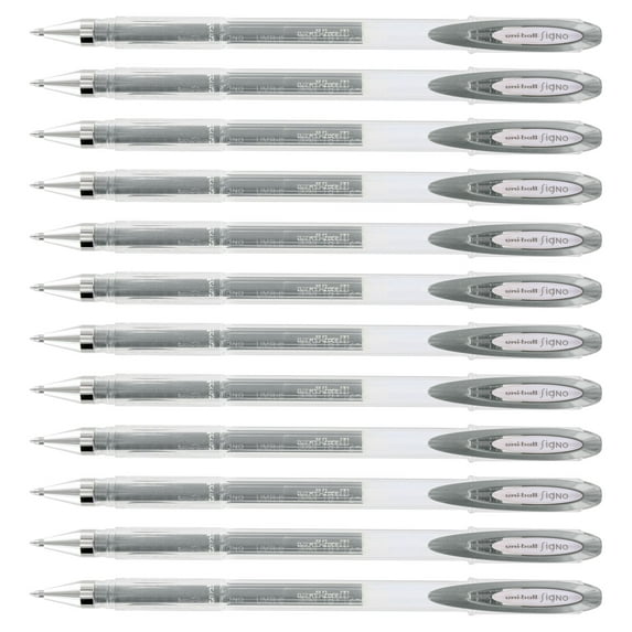 Uni-Ball Signo Gel Stick Pen, 0.7mm, Medium Point, Metallic Silver, 12-Count