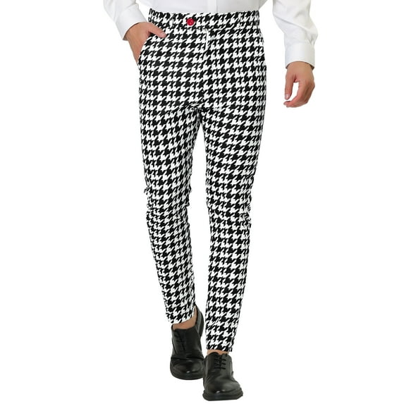 Hero image 0 of Unique Bargains Men's Geometric Printed Color Block Flat Front Dress Pants 38 Black White, 0 of 6