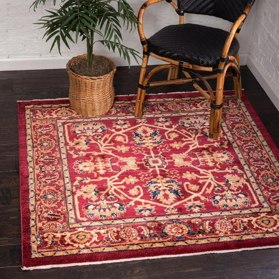 Hero image 0 of Unique Loom Alcott Dorchester Rug Burgundy/Beige 4' 5" Square Border Bohemian Perfect For Dining Room Living Room Bed Room, 0 of 2