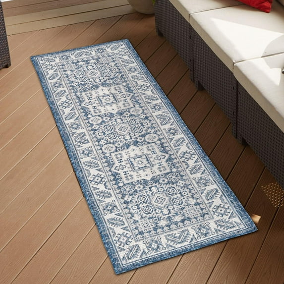 Hero image 0 of Unique Loom Outdoor Aztec Collection Area Rug - Chalca (2' x 8' Runner Blue/Ivory), 0 of 7