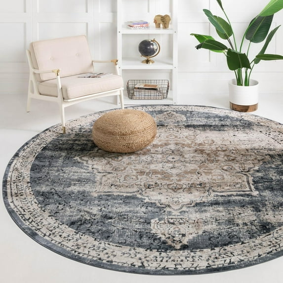 Unique Loom Chateau Collection Area Rug - Roosevelt (6' 1" Round Dark Blue/Beige)