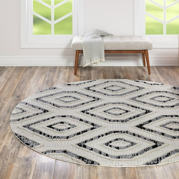 Unique Loom Cherokee Collection Area Rug - Gatlinburg (7' Round Black and White)