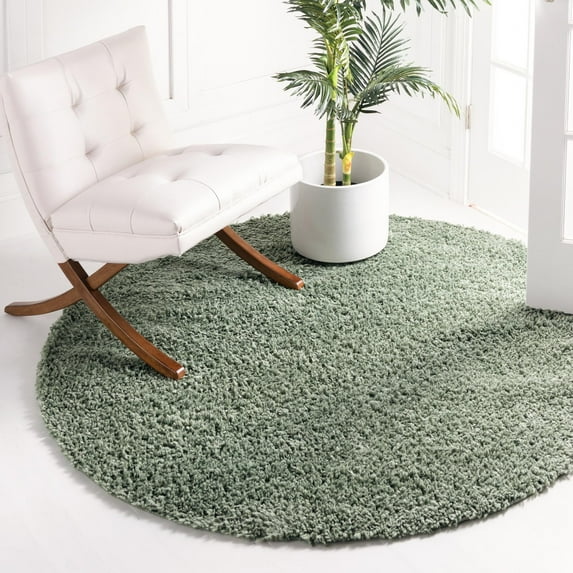 Unique Loom Davos Shag Collection Area Rug - Solid (10' Round Sage)