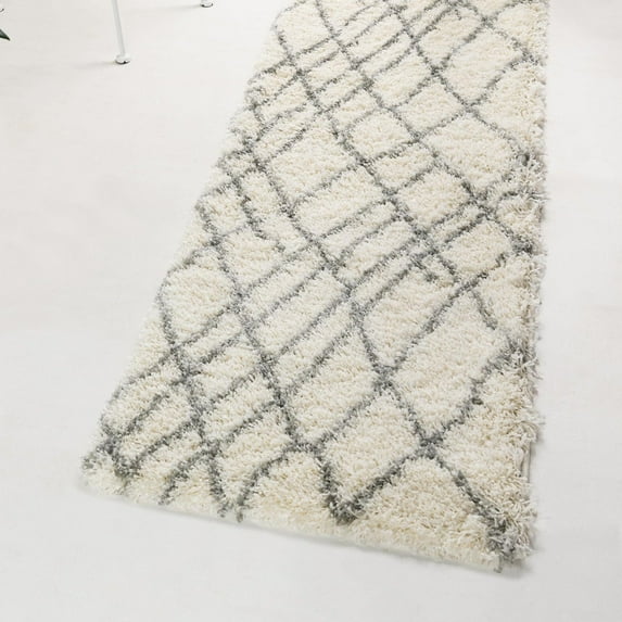 Hero image 0 of Unique Loom Soft Touch Shag Collection Area Rug - Dora (2' 7" x 10' Runner Ivory/Gray), 0 of 7