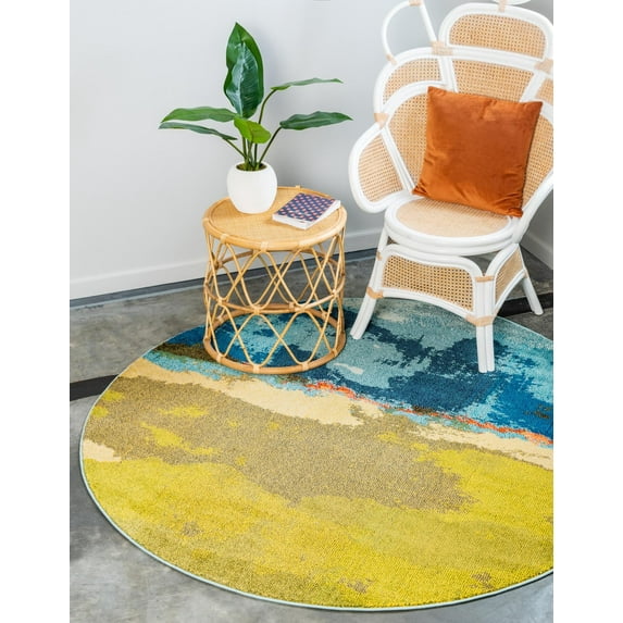 Unique Loom Medina Estrella Rug Blue/Green 6' 1" Round Abstract Modern Perfect For Dining Room Entryway Bed Room