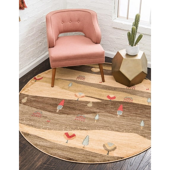 From the Fars Collection, a unique blend of classy deep and earthy hues creates a tranquil ambiance with this beautiful rug. Power-loomed with perfection, it ensures stain resistance, easy maintenance, and comfort. The lovely accent, promising a cozy underfoot feel, will surely turn out to be a focal point for your decor. It will be an ideal choice for your living room, dining room, etc. Product Features: Color(s): tan, beige, navy blue, brown, light blue and olive. Machine made. Medium pile. Backing: yes. Vintage style striped pattern round area throw rug. Recommended for indoor use only. Easy-to-clean, stain resistant and does not shed. Use rug pad to reduce slipping and sliding. Rug pad sold separately. Made in Turkey. Care instructions: Spot clean only. Regular vacuuming. Use a carpet cleaner but it should be dried immediately and evenly. In case of creases - roll the rug in the opposite direction, while applying pressure to the rug - take the edge, flip it where there is a crease, and slowly pull the rug back, while applying downward pressure on the crease. Dimensions: 6' diameter. Pile height: 0.33". Material(s): polypropylene. Backing: cotton