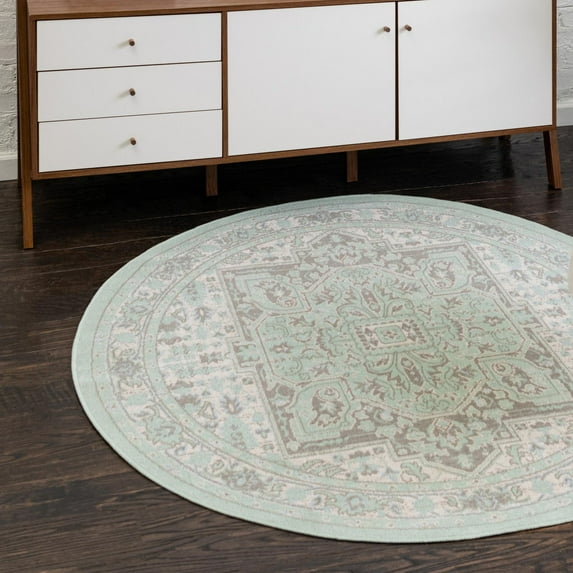 Hero image 0 of Unique Loom Whitney Collection Area Rug - Milano (5' Round Mint/Ivory), 0 of 6