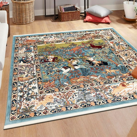 Unique Loom Narenj Collection Area Rug - Birmingham (4' Square Blue/Burgundy)