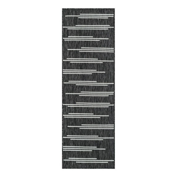 Unique Loom Outdoor Modern Collection Area Rug - Miranda (2' x 6' 1" Runner Black and White)