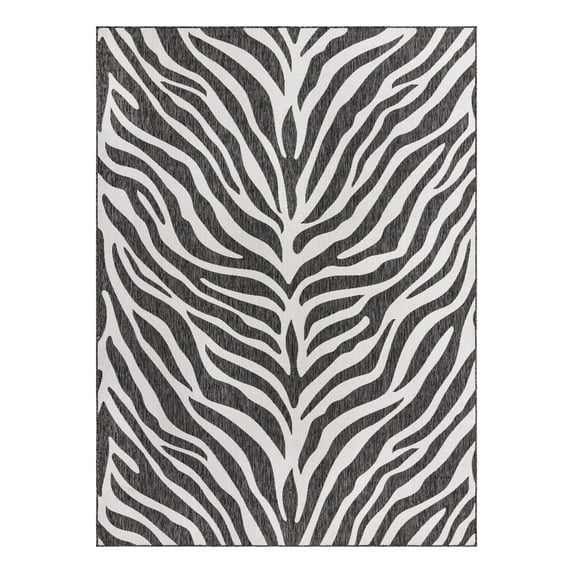 Hero image 0 of Unique Loom Outdoor Safari Collection Area Rug - Tsavo (7' 10" x 11' Rectangle White/Black), 0 of 12