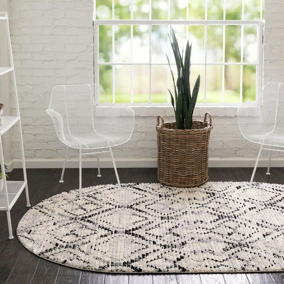 Unique Loom Tucson Collection Area Rug - Pima (8' x 10' Oval Ivory/Gray)