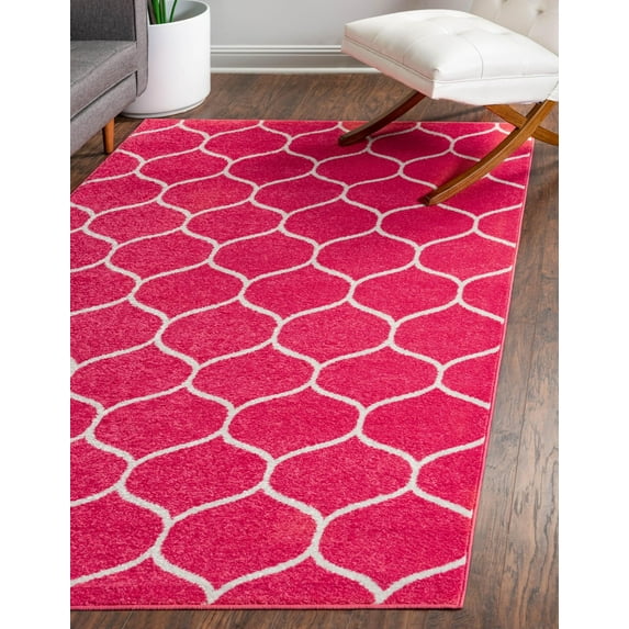 Hero image 0 of Unique Loom Rounded Trellis Frieze Rug Pink/Ivory 6' 1" x 9' Rectangle Trellis Traditional Perfect For Living Room Bed Room Dining Room Office, 0 of 7