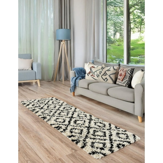 Hero image 0 of Unique Loom Trellis Shag Collection Area Rug - Ruth (2' 7" x 12' Runner White and Black/Ivory), 0 of 10