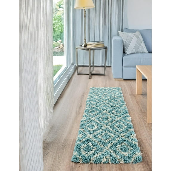 Hero image 0 of Unique Loom Trellis Shag Collection Area Rug - Ruth (3' 3" x 16' 5" Runner Aqua/Ivory), 0 of 9