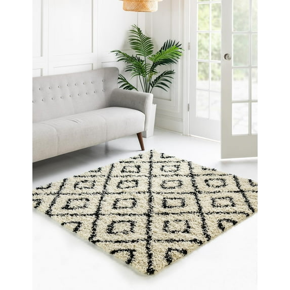 Hero image 0 of Unique Loom Trellis Shag Collection Area Rug - Ruth (10' Square White and Black/Ivory), 0 of 11