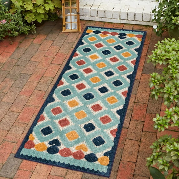 Unique Loom Belize Outdoor Collection Area Rug - Sarstoon (2' x 10' Runner Ivory/Light Blue)