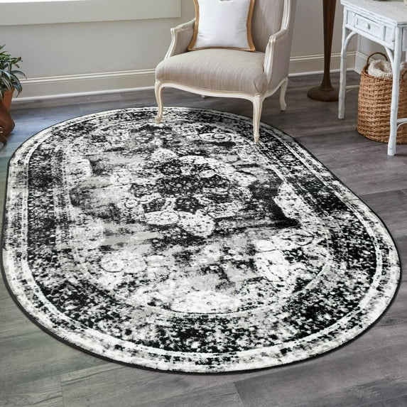 Hero image 0 of Unique Loom Sofia Collection Area Rug - Salle Garnier (7' 10" x 10' Oval Black/Ivory), 0 of 6