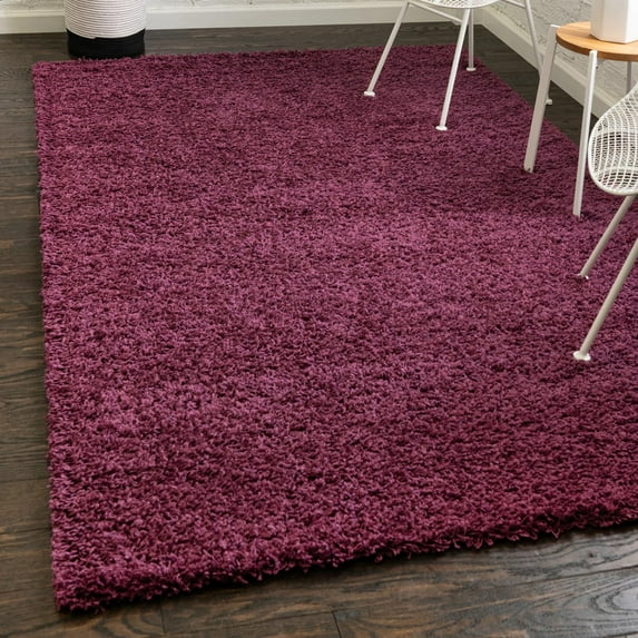 Hero image 0 of Unique Loom Solid Shag Collection Area Rug (6' 1" x 9' Rectangle Eggplant Purple), 0 of 6