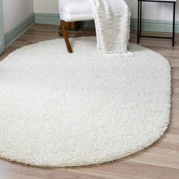 Unique Loom Solid Shag Collection Area Rug (7' 10" x 10' Oval Snow White)