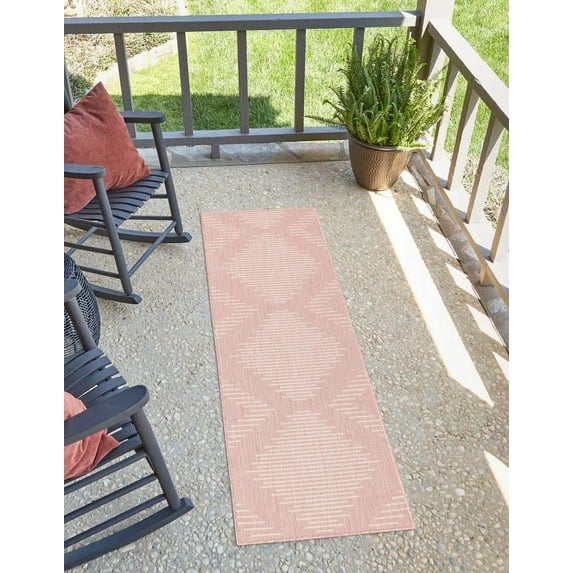 Hero image 0 of Unique Loom Outdoor Modern Collection Area Rug - Tambor (2' x 6' Runner Pink/Ivory), 0 of 6