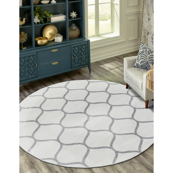 Hero image 0 of Unique Loom Trellis Frieze Collection Area Rug - Rounded (6' Round Ivory/Gray), 0 of 7