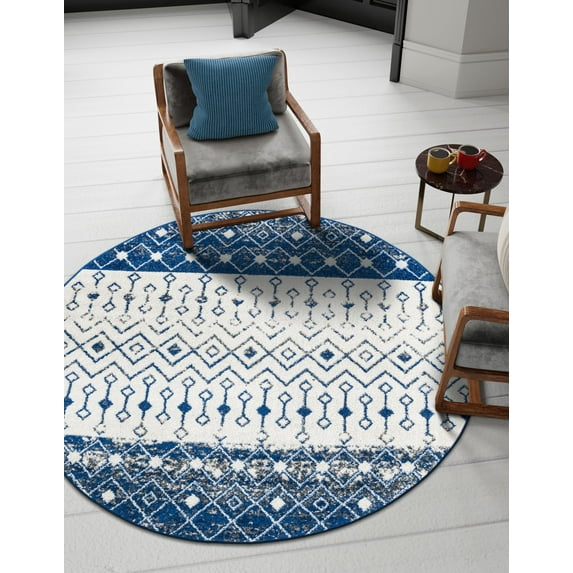 Hero image 0 of Unique Loom Tribal Trellis Collection Area Rug - Alami (10' Round Ivory Navy Blue/Gray), 0 of 12