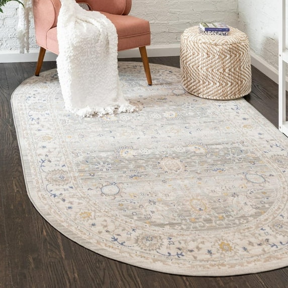 Unique Loom Whitney Collection Area Rug - Bordeaux (5' x 8' Oval Cloud Gray/Blue)