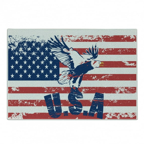Hero image 0 of United States Cutting Board, Grunge Looking American National Flag Eagle and USA Print, Decorative Tempered Glass Cutting and Serving Board, Small Size, Navy White Red, by Ambesonne, 0 of 1