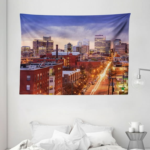 Hero image 0 of United States Tapestry, Richmond Virginia Highway Office Buildings Downtown at Dusk Urban Lifestyle, Wall Hanging for Bedroom Living Room Dorm Decor, 80W X 60L Inches, Multicolor, by Ambesonne, 0 of 2