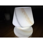 This brown marble Urban Shop mushroom lamp is really pretty and modern. It's off white glass with swirls of grey and tan so it's pretty whether it's on or off. It takes a 15W bulb so the lamp puts off a really soft, pretty glow that gives off a very relaxing vibe. My mom instantly fell in love with it and had to immediately order one for herself. It has a convenient on/off switch on the cord. It's 10 inches in height and 7.5 inches at its widest point. I highly recommend this lamp.