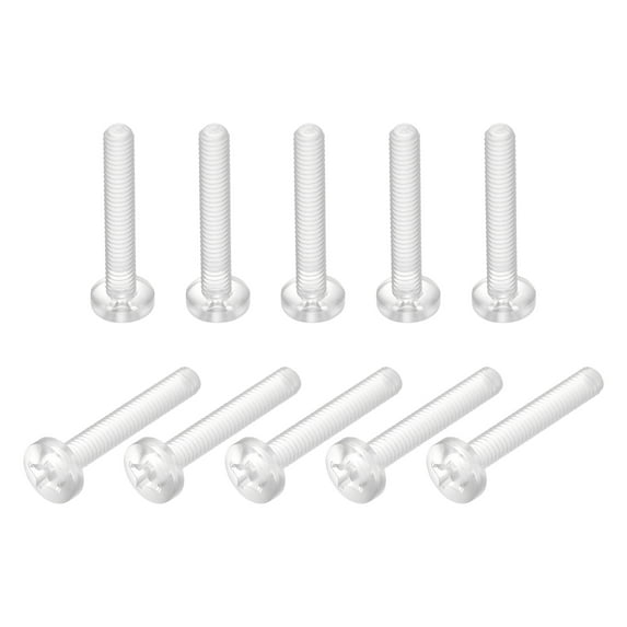 Hero image 0 of Uxcell M4x25mm Plastic Phillips Bolts PC Pan Head Machine Screws Transparent 50 Pack, 0 of 5