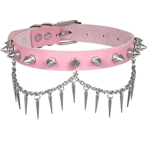 Hero image 0 of VIGVAN Women Studded Cross Leather Choker Steampunk Style Gemstone Gothic Choker Alloy Metal Necklace (Tassels Spike Pink), 0 of 6