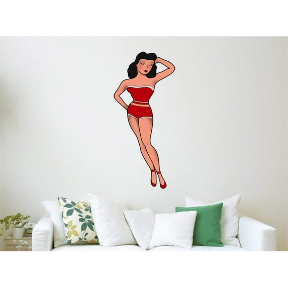 Hero image 0 of VWAQ Pinup Girl Wall Decals Stickers - Vintage American Traditional Tattoo Wall Art - AT5 (40" H X 18" W), 0 of 2