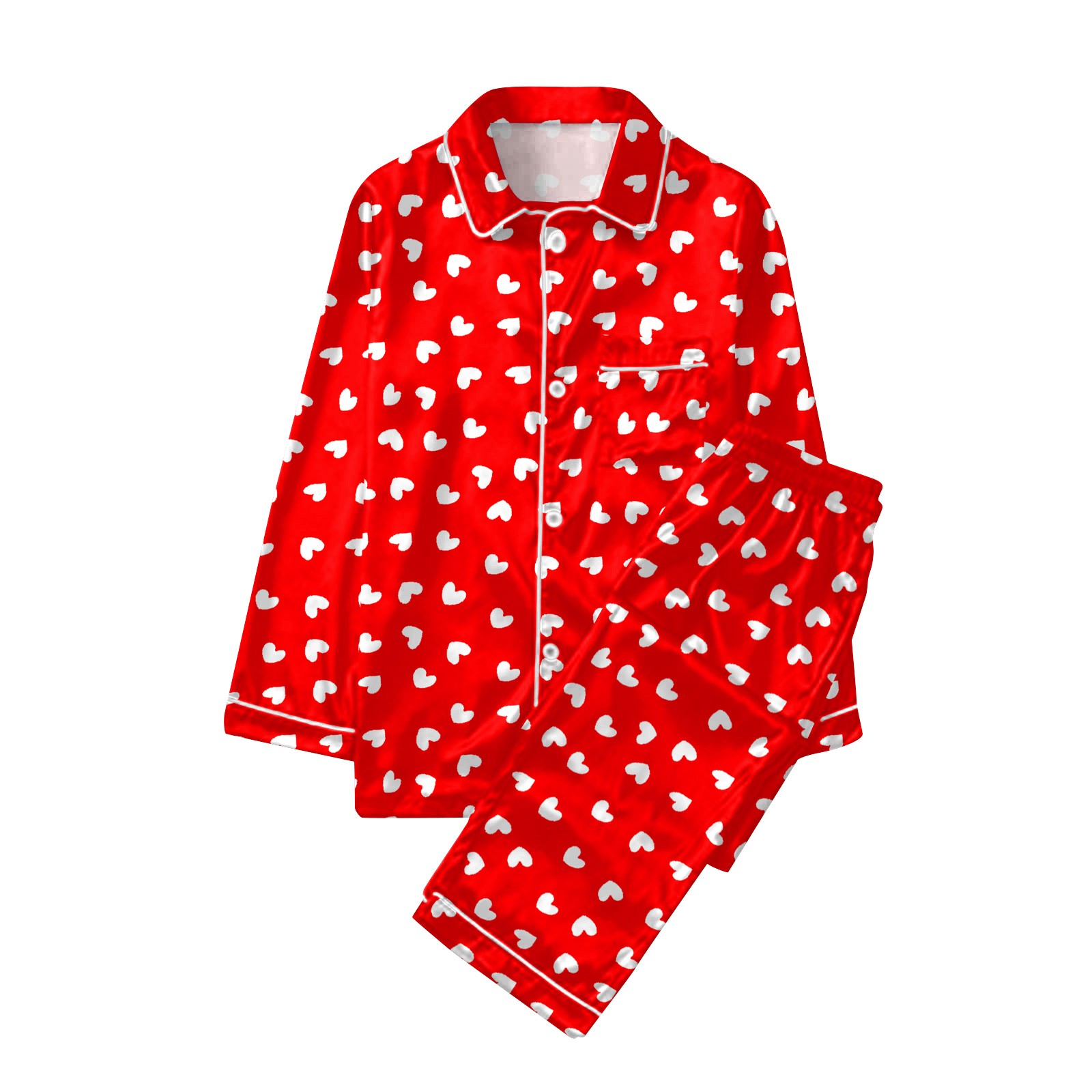 Valentine's Day Pajamas Sets for Women Cotton Button Down Pj Set Cute Heart Print Nightwear Soft Pj Lounge Sets